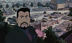 En effet, non seulement on suit Chiyoko sur l’ensemble de sa carrière là où on ne voyait que le tournage du premier film de Mima, mais surtout le cinéma a ici une place primordiale alors que dans Perfect Blue il n’apparaissait qu’en toile de fond. L’idée très originale de Satoshi Kon est de mélanger les scènes de la vie privée de Chiyoko avec celles des rôles qu’elle interprète, créant ainsi une confusion ambiguë entre ses souvenirs personnels et ses souvenirs de tournage. Ce mélange est d’autant plus troublant que Chiyoko interprète des rôles très différents, qui reflètent par ailleurs l’évolution du cinéma japonais durant les années 30 à 50, ce qui se répercute sur le style graphique qui change quelque peu tout au long de ces scènes ! Autre grosse différence avec Perfect Blue, un ton plus léger avec notamment un humour bienvenue qui permet de dédramatiser certaines scènes (sans les rendre moins émouvantes). Ce sont principalement les personnages de Genya et de son assistant cameraman qui apportent cette touche en s’immisçant (en tant que spectateurs) dans les souvenirs de Chiyoko comme si ceux-ci prenaient vie devant eux ! Cette idée sera largement reprise par le réalisateur dans l’épisode 5 de Paranoïa Agent où l’inspecteur Ikari et son assistant Maniwa se retrouvent plongés dans un univers de jeu de rôle.