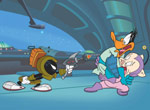 Les personnages sont joués par de fameux héros de la Warner : Daffy Duck et son éternel souffre-douleur Porky, confrontés à Marvin le Martien. Les épisodes de cette série hilarante, sont aussi des clins d’œil parodiques à plusieurs films ou sagas bien connus et certains des héros cultes de la bande des Looney Tunes sont exploités dans des rôles appropriés : Sam le pirate devient Sa'am (pastiche des Klingons de Star Trek) et Elmer Fudd le chasseur devient une sorte de parasite alien. Mais d'autres personnages connus font des apparitions en guest, comme Vil Coyote (en chasseur d'extraterrestres), Taz et même the Crusher (baptisé "l'assommoir" dans les premières VF Warner), le fameux catcheur monstrueux qui affrontait Bugs Bunny dans deux épisodes du célèbre lapin.