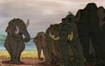 Concernant les personnages justement, on notera qu'il aurait du y en avoir un autre : le stupide Rocky le rhinocéros, un personnage qui ajoutait des scènes comiques avec Mowgli, mais qui a finalement été jugé de trop par Walt Disney (le personnage n'était pas assez beau et donc redondant avec d'autres animaux tout aussi ridicules comme les vautours). En parlant des vautours justement, ils ont tous les 4, avec leur chanson et leur coupe de cheveux, été inspirés par le groupe des Beatles ! La chanson qu'ils interprètent à la fin aurait dû d'ailleurs à l'origine être plus "rock", du moins, davantage dans l'esprit de ce que faisait ce groupe anglais mythique.