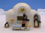 On peut également découvrir au travers du métier du père de Pingu travaillant comme facteur, quand Pingu l'accompagne dans sa tournée, le bureau de la Poste où il officie et voir l'enseigne du bâtiment illustrée du dessin d'un cor postal (qui est aussi sur la casquette du papa de Pingu), instrument qui fut utilisé par les facteurs jusqu'au 19ème siècle, et qui est une référence au véritable logo des cars alpins de la Poste suisse ainsi que celui de la Deutsche Bundespost (devenu en 1989 Deutsche Post), la Poste allemande, le créateur de Pingu étant né en Allemagne et ayant vécu en Suisse.
